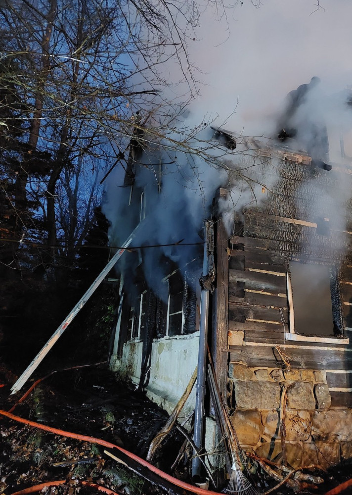 Požár v Arnultovicích. K hořící roubence zamířilo pět jednotek hasičů