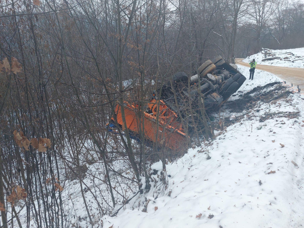 Ledovka znovu zkomplikovala život v Libereckém kraji. Převrátil se sypač, Rychnov vyhlásil kalamitní stav