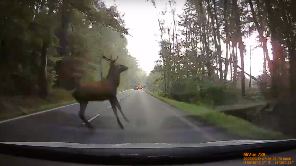 Jelen mezi Práchní a Novým Borem znovu v akci. Řidič strhl řízení, došlo k čelní srážce s autem
