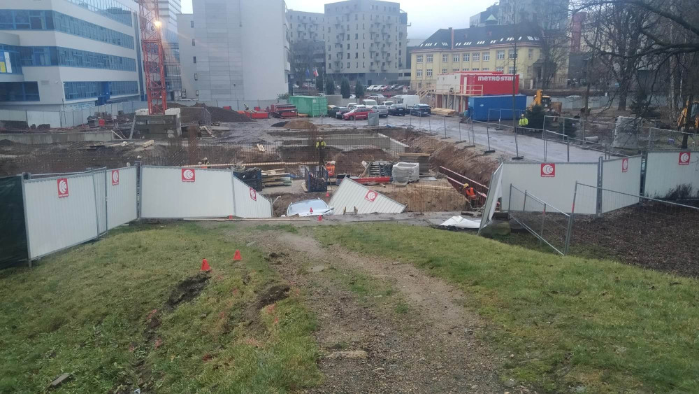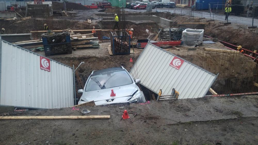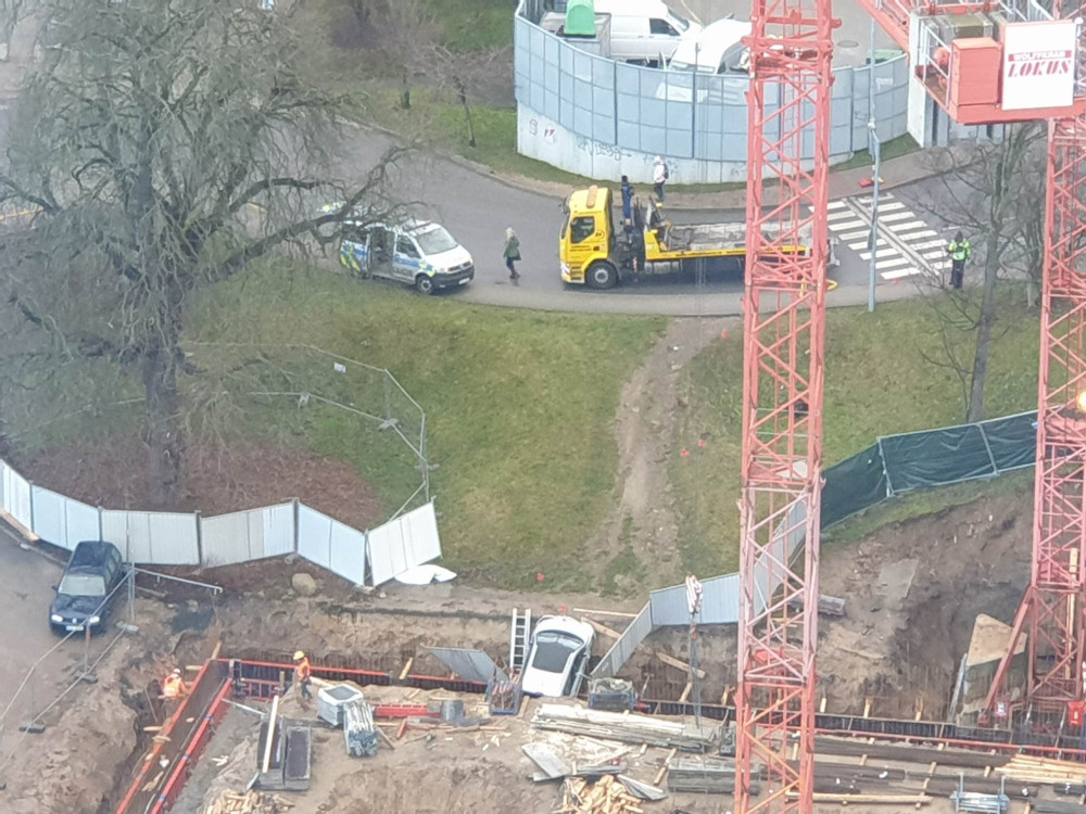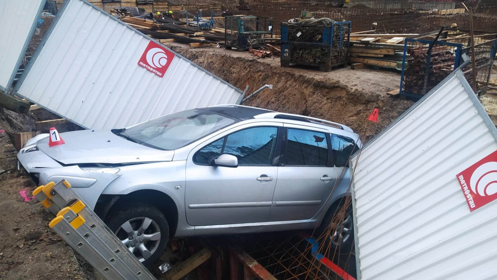 Noční cesta autem skončila ve výkopu parkovacího domu. Řidič zmizel