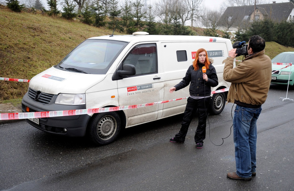Přepadená dodávka odstavená poblíž místa činu u benzínové pumpy v Sedmihorkách u Turnova na Semilsku.