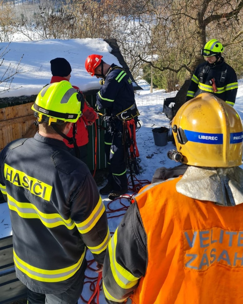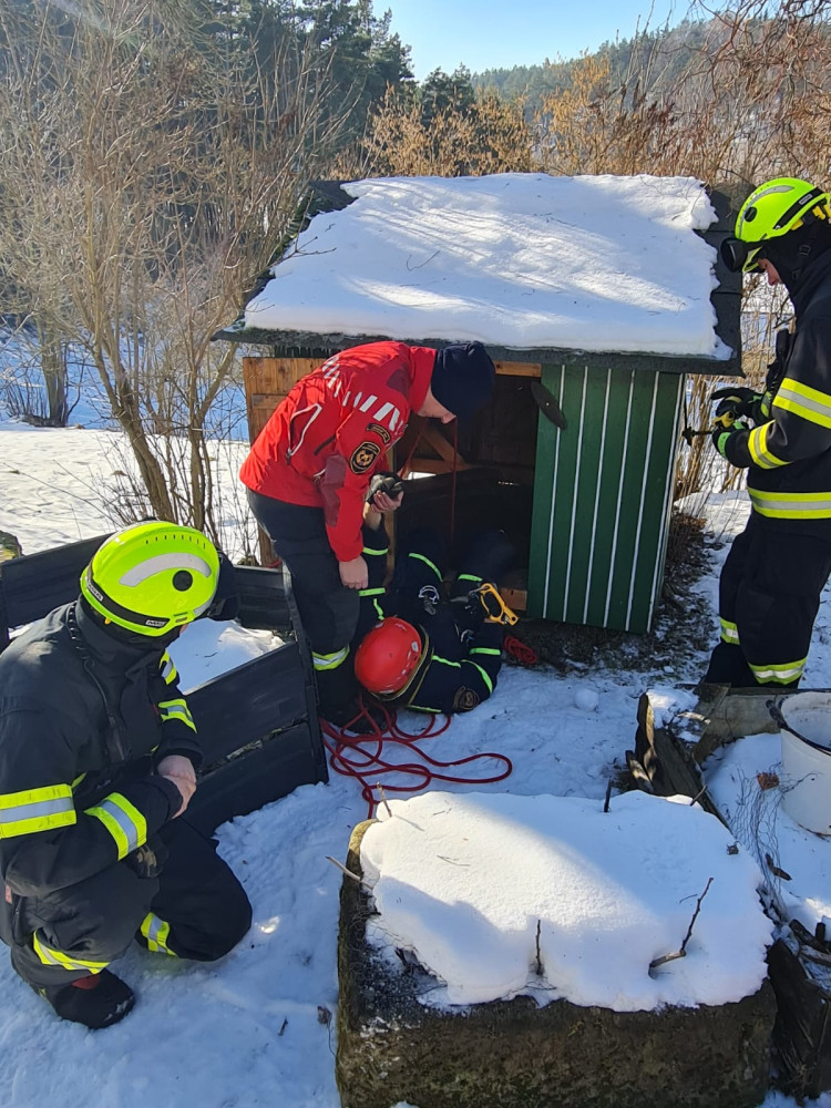 Kočka spadla do desetimetrové studny, zachránili ji hasiči lezci