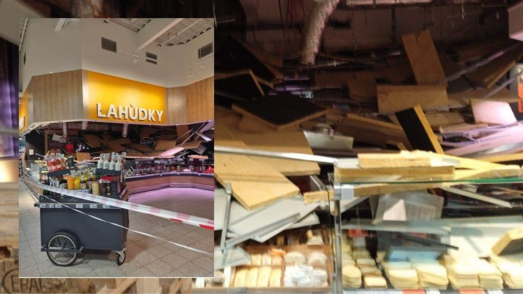 Zřícený strop v libereckém Kauflandu.