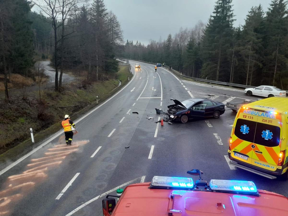 Srážka dvou aut u Rádla. Jeden člověk skončil v nemocnici
