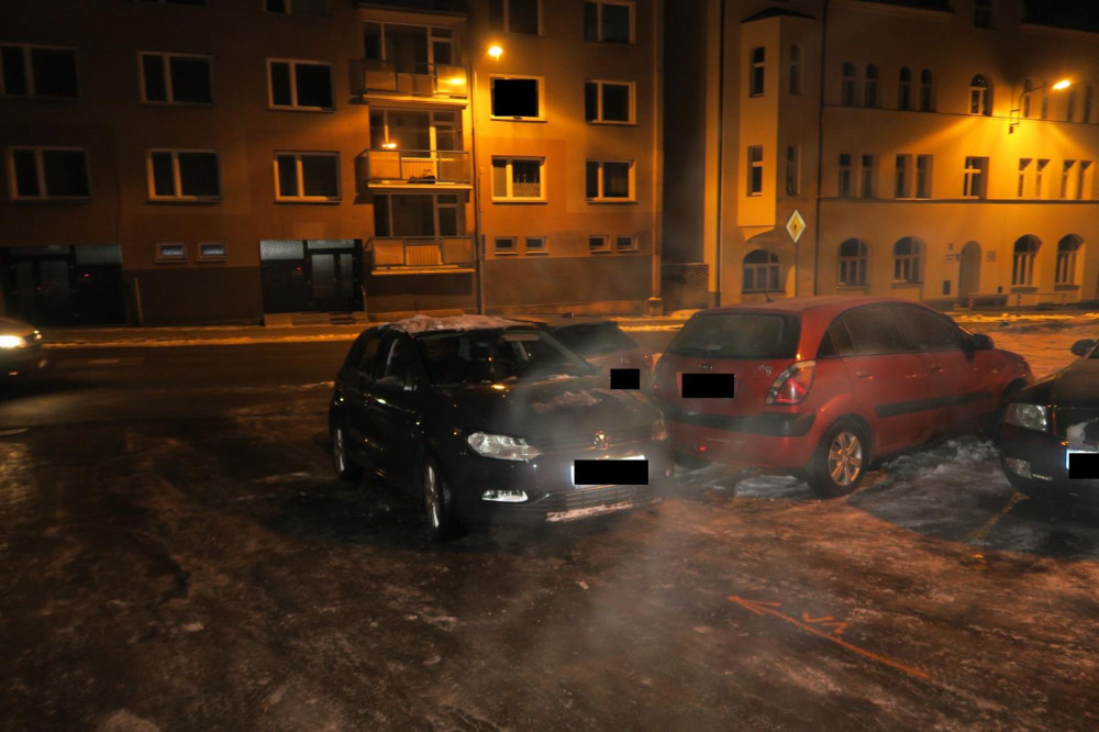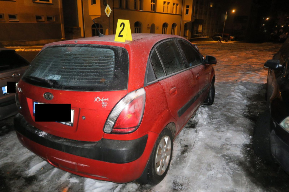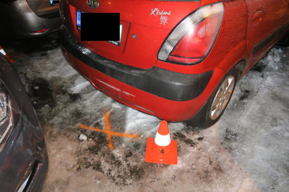 Nabourané auto na parkovišti v Liberecké ulici v Jablonci.