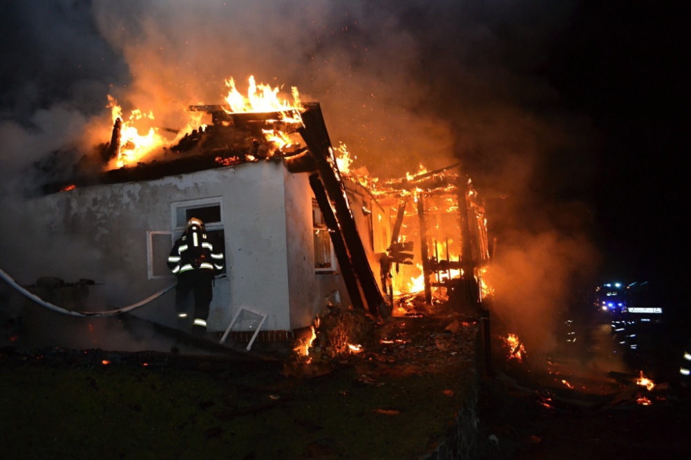 Roubenka lehla popelem, škoda jde do milionů. Foto: HZSLK