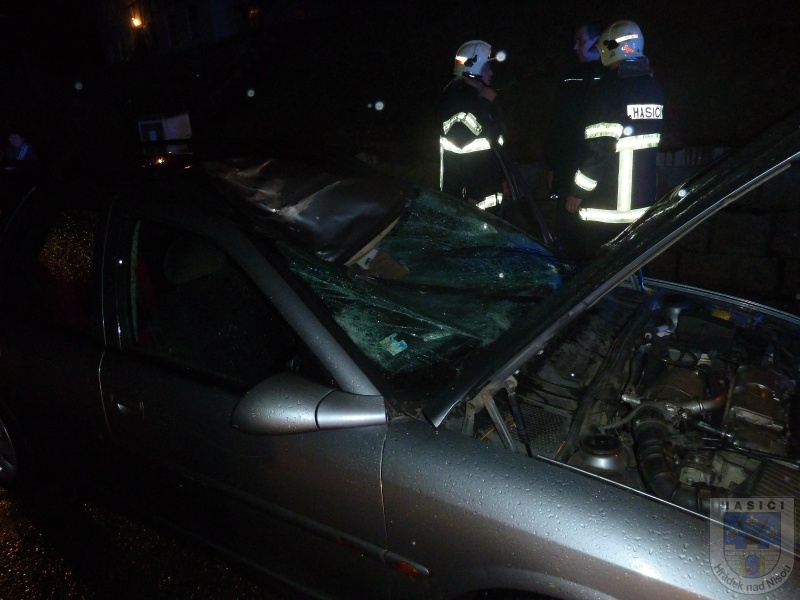 Tvrdý náraz v Oldřichově. Řidička večer usmrtila koně. Foto: Hasiči Hrádek nad Nisou