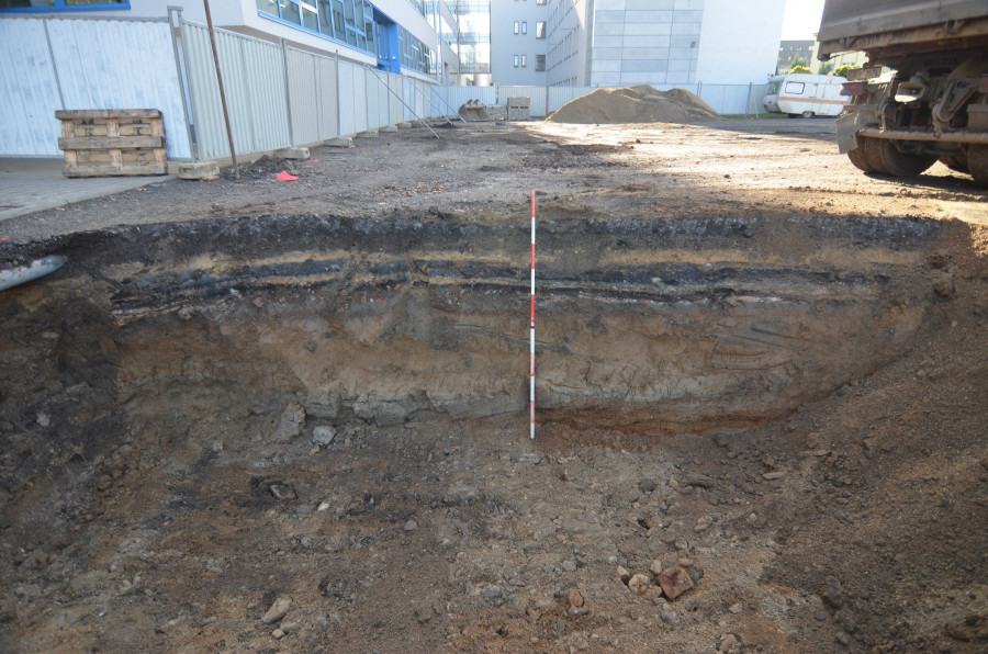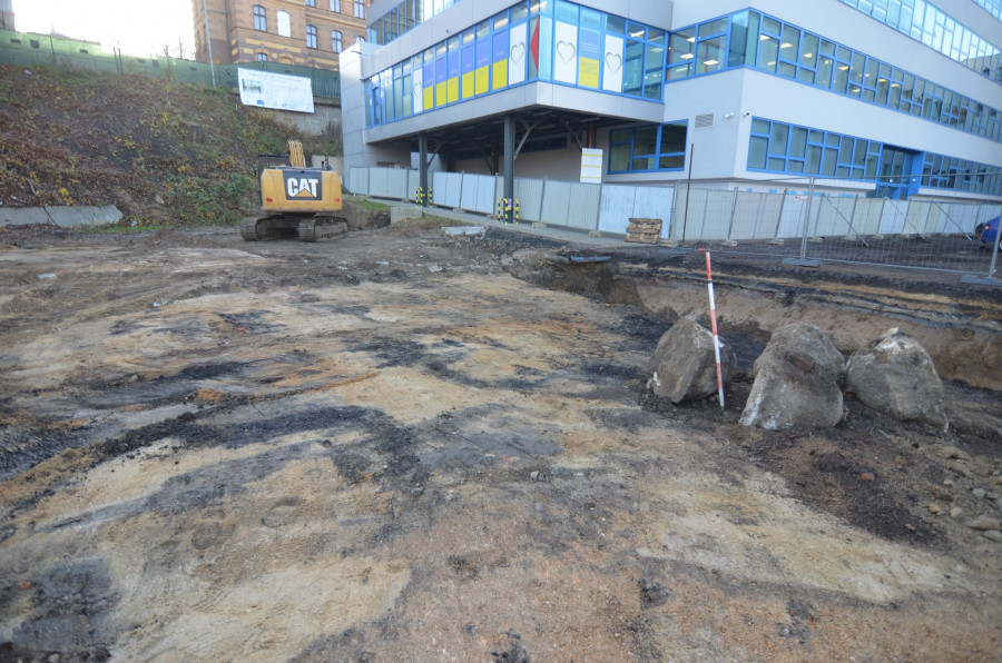 Archeologický průzkum v místě stavby parkovacího domu u krajského úřadu. Našli zbytky náhonu i kuthan