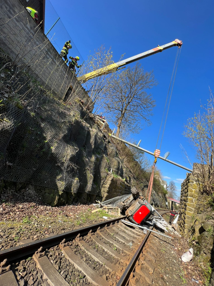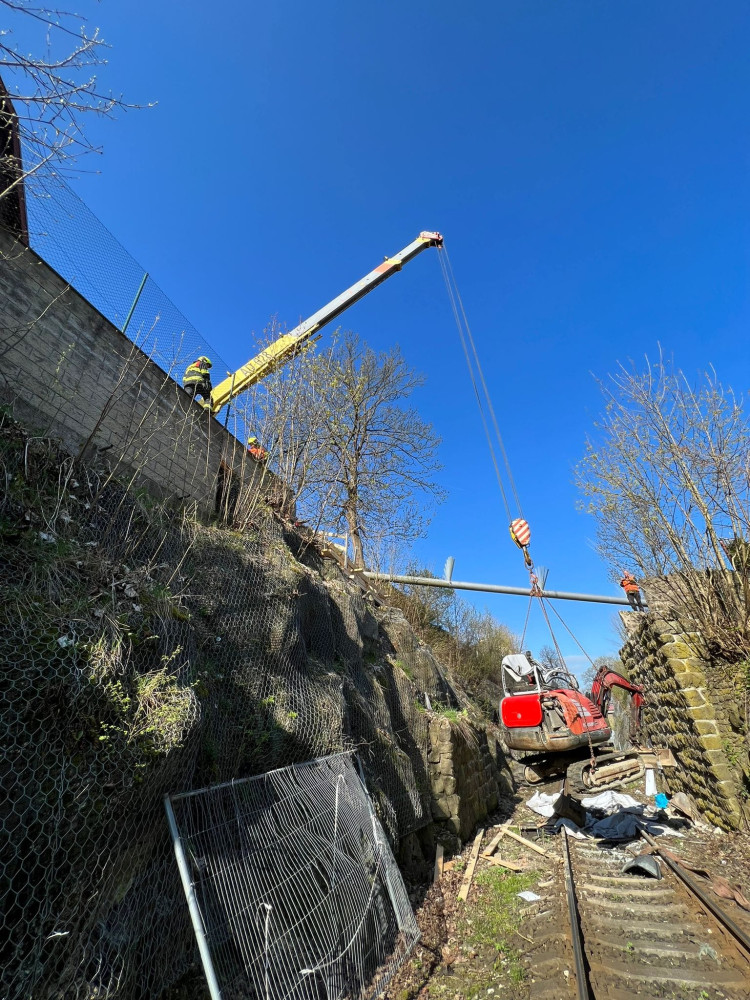 Bagr se zřítil z lávky do kolejiště, vyprostili ho drážní hasiči