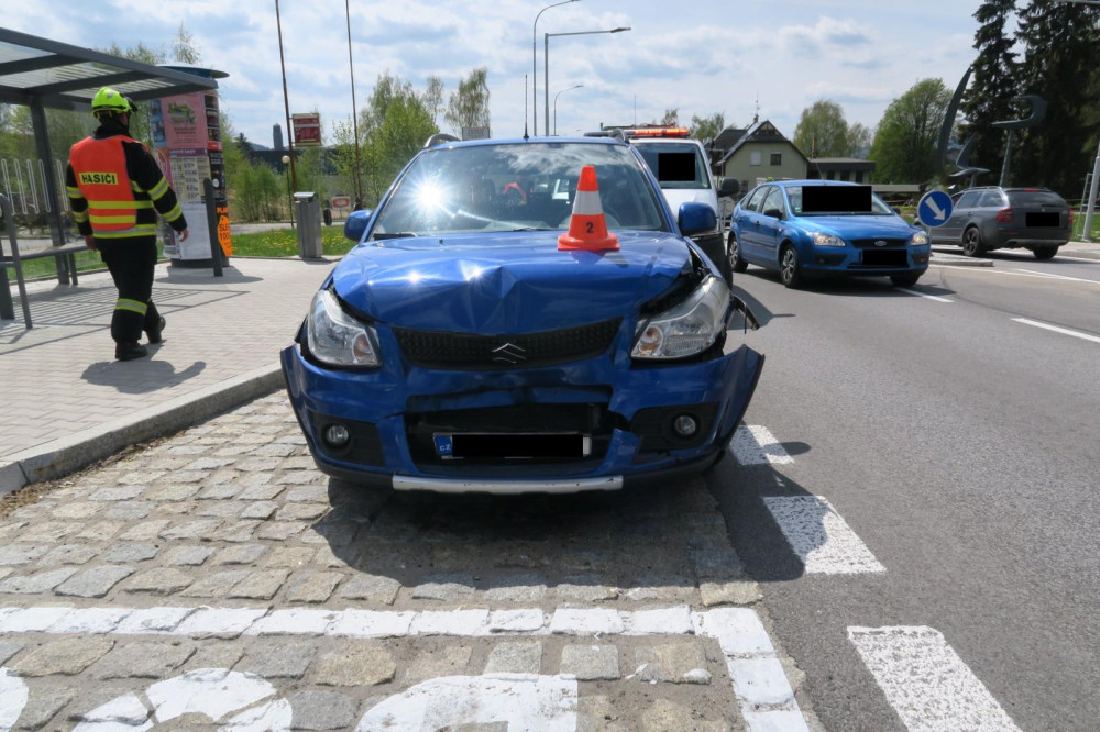 Nehoda na Jablonecku. Žena nabourala do auta a skončila v nemocnici