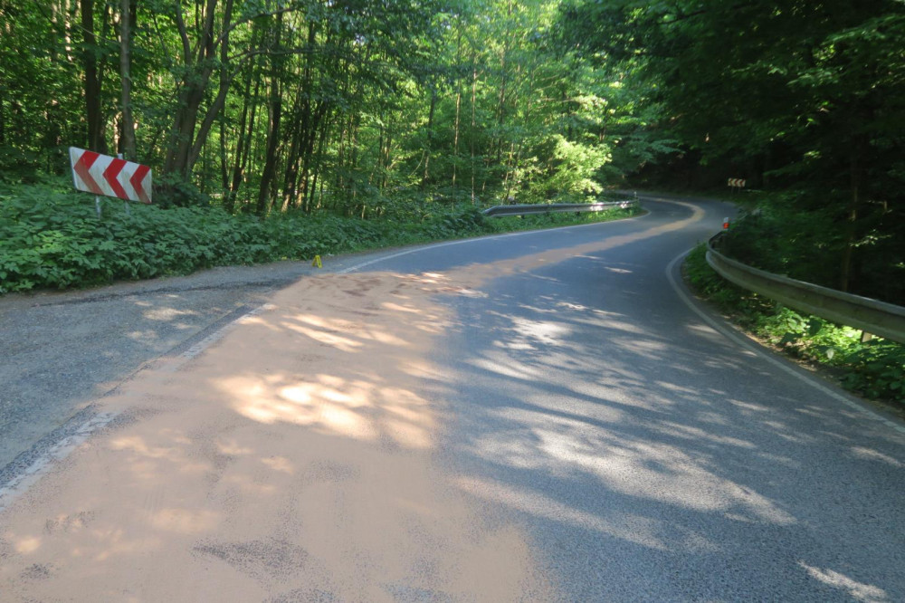 Za nehodu motorky mohl olej. Kdo jím silnici znečistil, zjišťuje policie