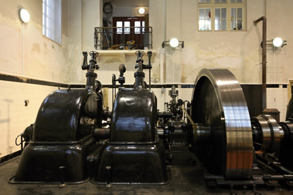Interiér elektrárny v Rudolfově.