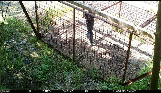 Člověk v kleci na odchyt prasat zachycení na kameře.