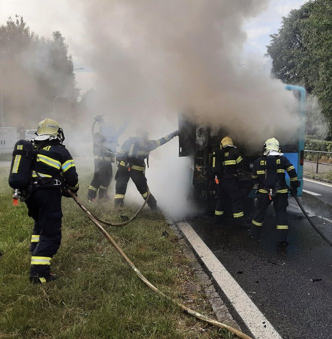 Hořící autobus zaměstnal večer liberecké hasiče.