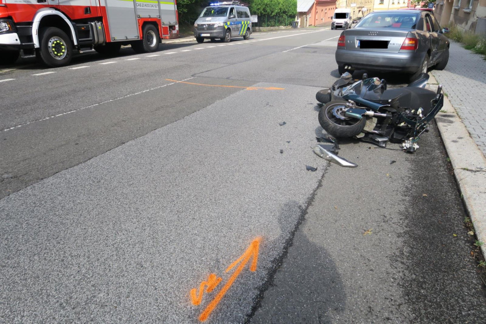 Řidička si nevšimla mladého motorkáře a vjela mu rovnou do cesty