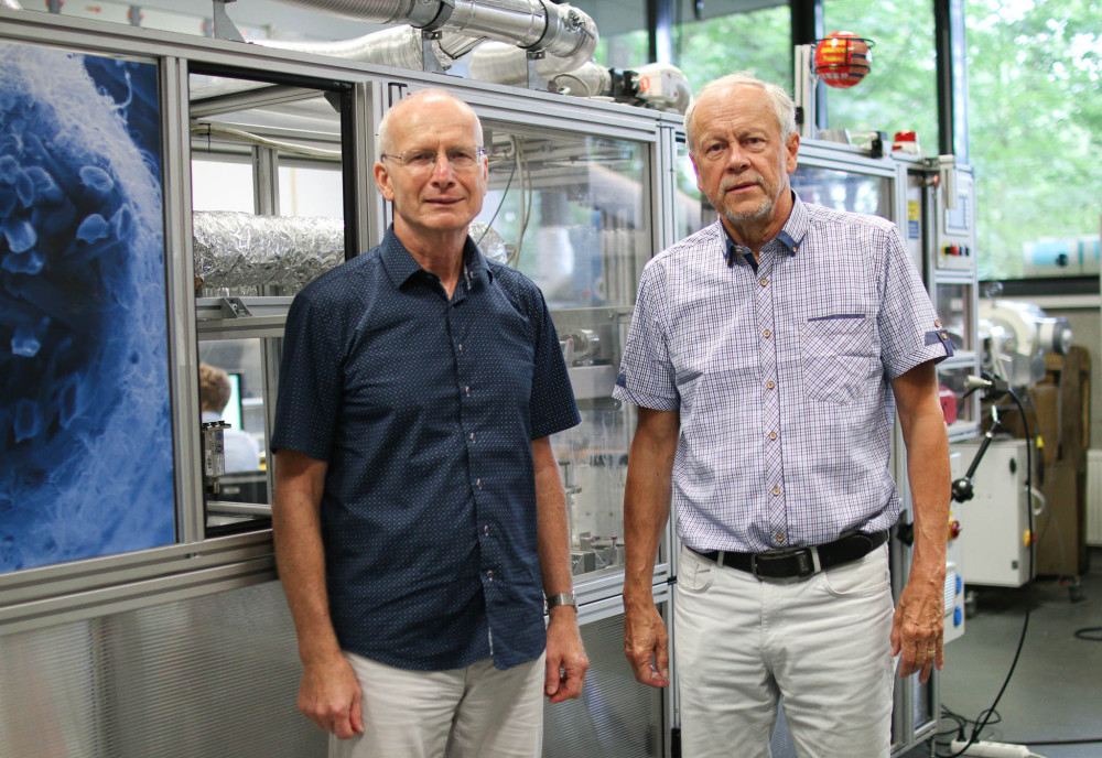 Vedoucí výzkumných týmů (zleva): David Lukáš z Katedry chemie Fakulty přírodovědně-humanitní a pedagogické TUL a Jaroslav Beran z Katedry textilních a jednoúčelových strojů Fakulty strojní TUL.