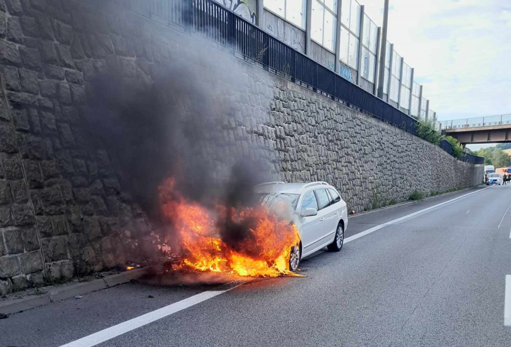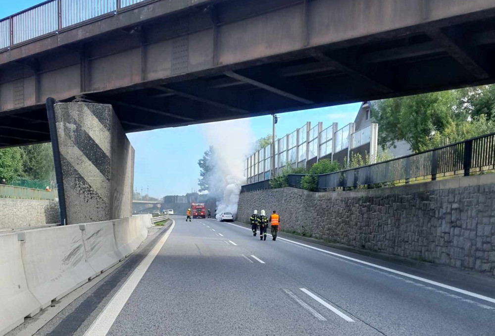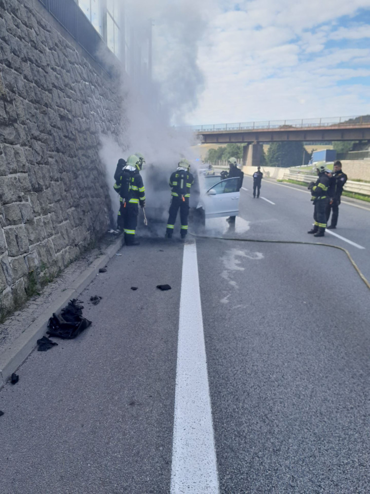 U Jeřmanic na rychlostce hořelo auto, likvidace následků brzdí dopravu