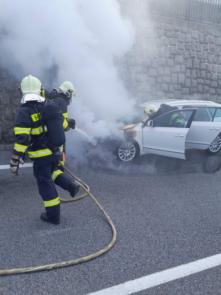 Požár osobního vozu u Jeřmanic.