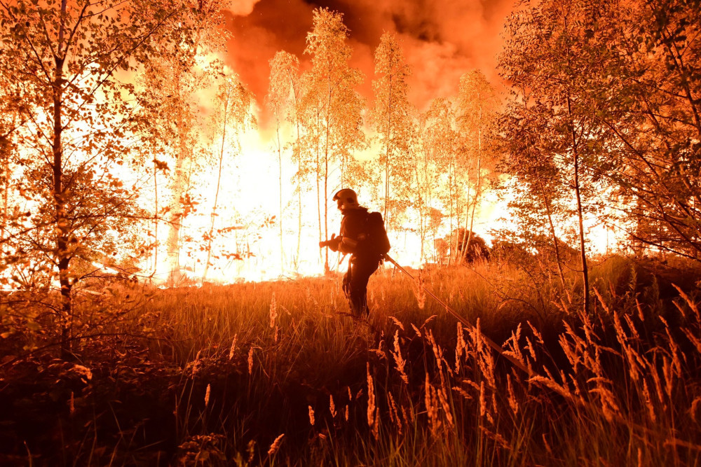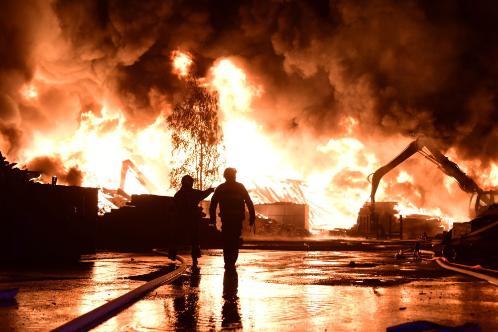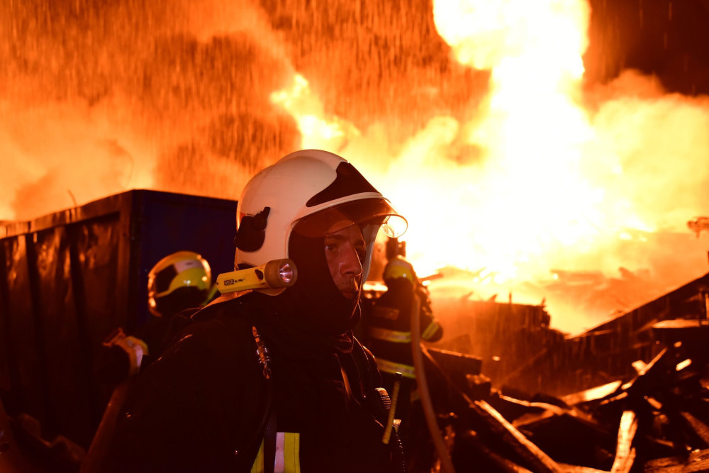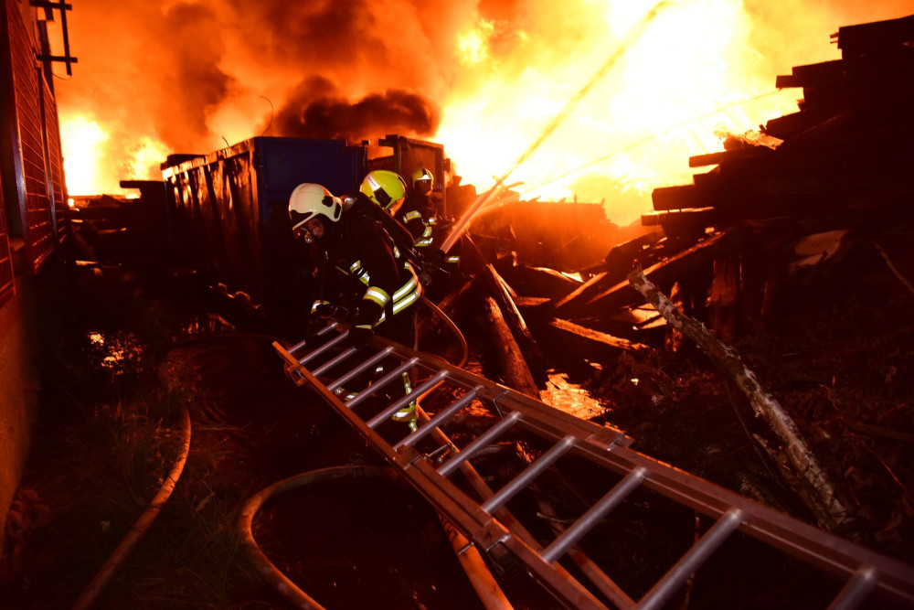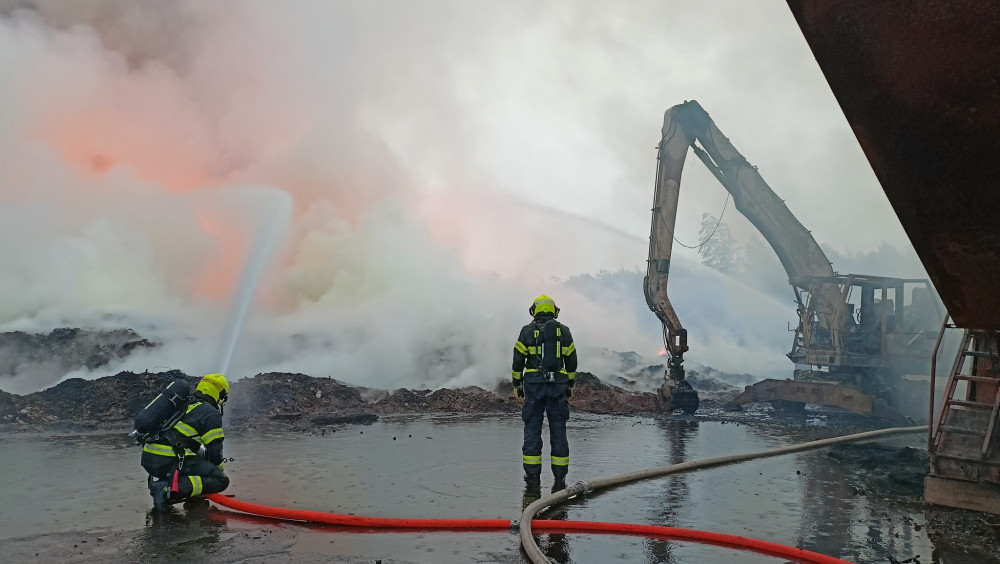 Hasiči z Libereckého kraje pomáhají kolegům s obrovským požárem pražců v Tisové u hnědouhelné elektrárny