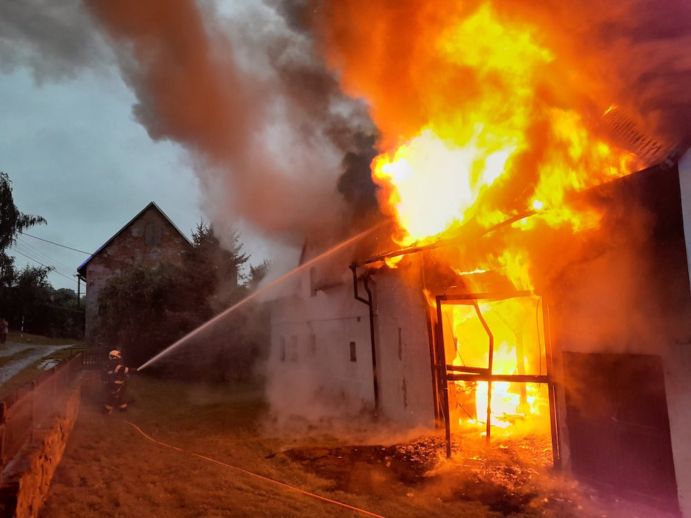 V Heřmanicích hořel rodinný dům. Část se zřítila