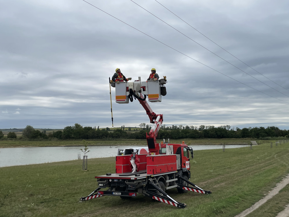 Energetici s ochranáři dávají na dráty vysokého napětí výstražné koule, aby neumírali ptáci