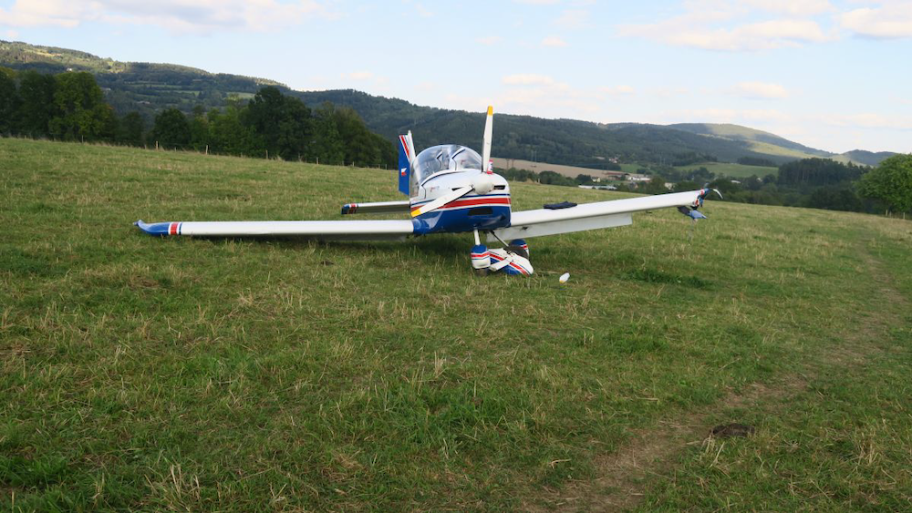 Letadlo křídlem zavadilo o automobil. Škoda přesahuje půl milionu