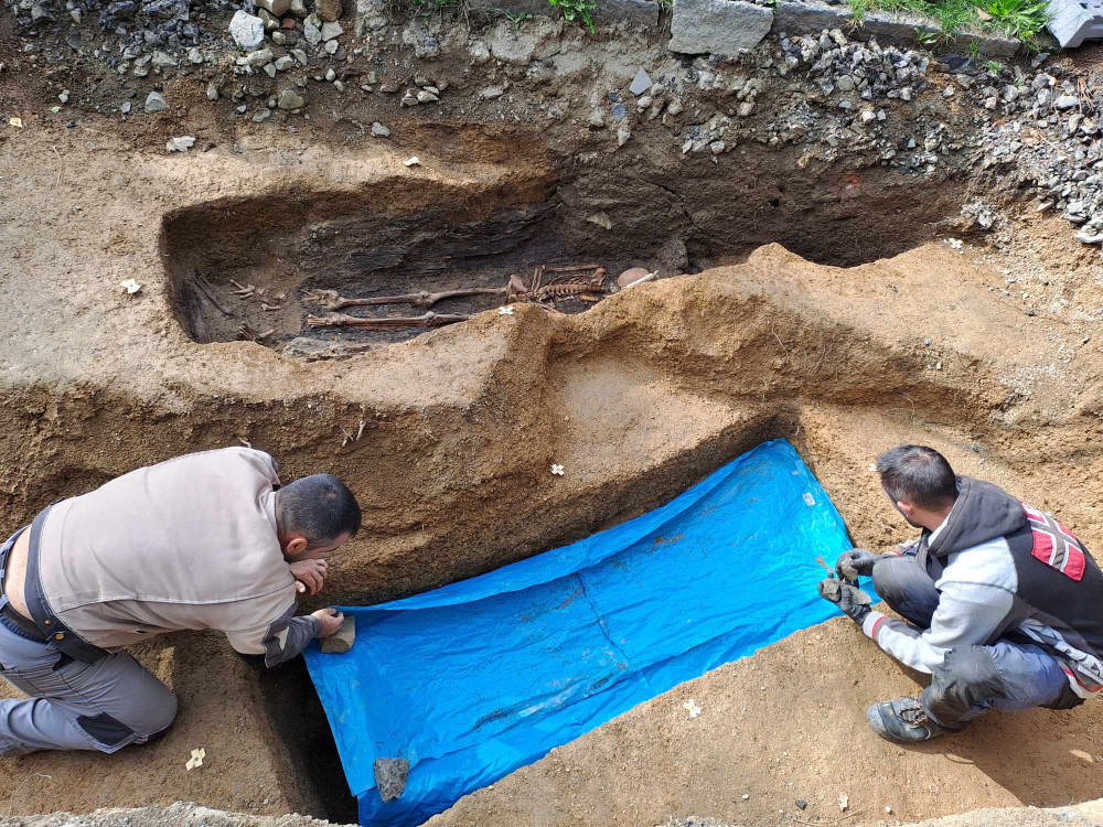 FOTO: Archeologové v parku u bazénu odkryli kostry, hroby a staré hrobky. Upozornila na ně propadající se místa