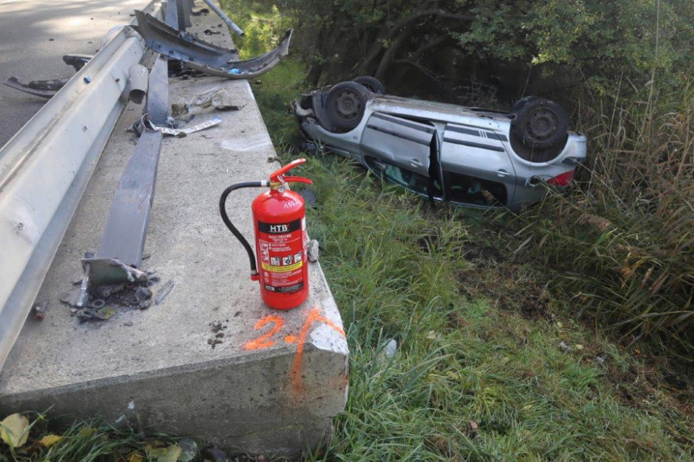 Usnula za volantem, vylétla ze silnice a skončila s vozem na střeše