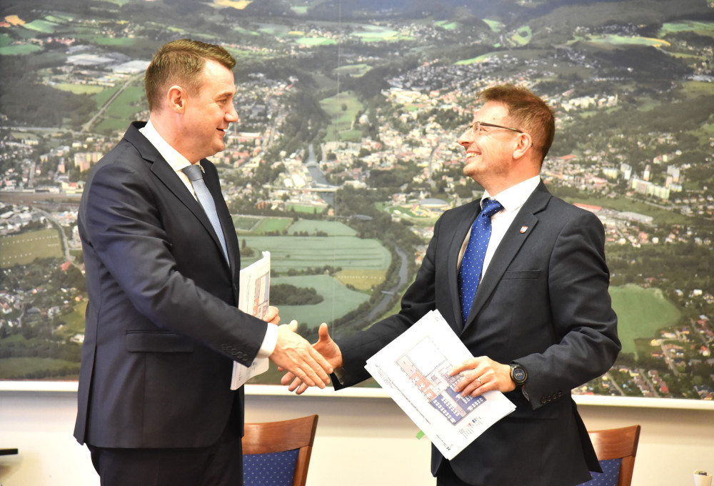 Hejtman Martin Půta (vlevo) podepsal memorandum se starostou Turnova Tomášem Hockem.