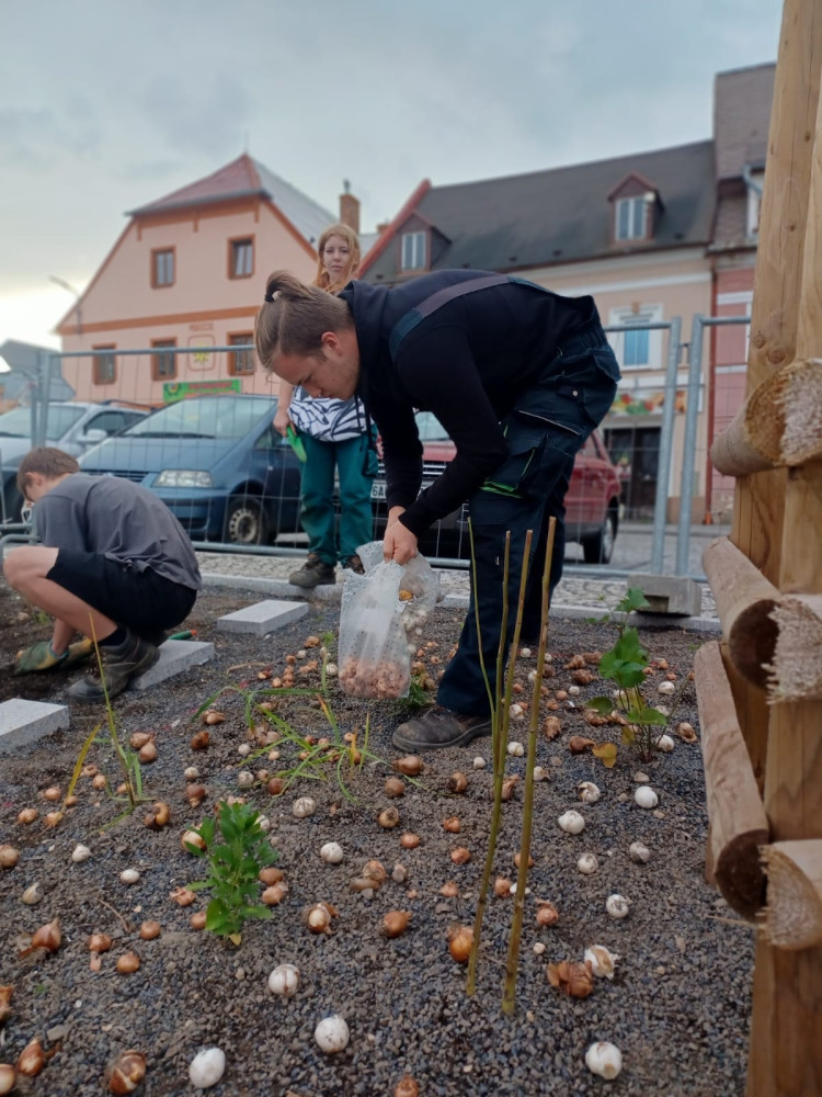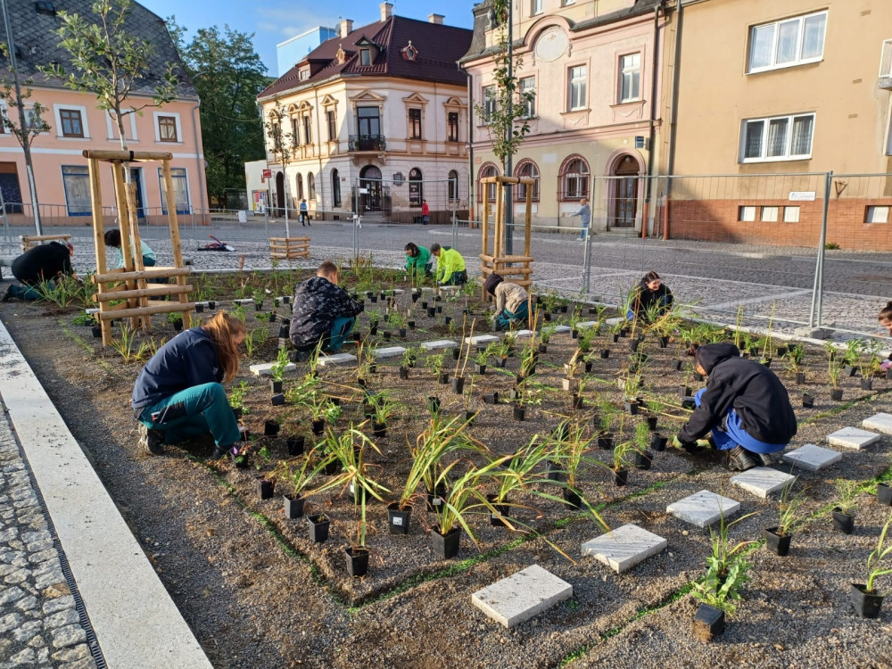Výsadba na náměstí v Novém Městě pod Smrkem.