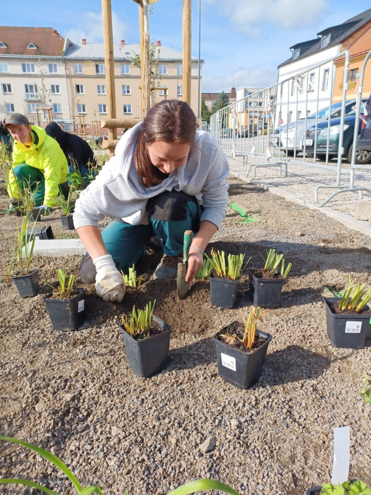 Výsadba na náměstí v Novém Městě pod Smrkem.