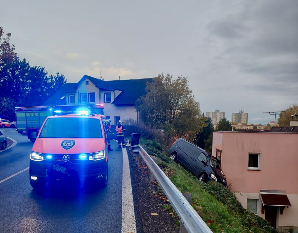 Při nehodě na Jablonecké se zranil dospělý a dvě děti. Vyproštění vozu si vyžádalo uzavření silnice