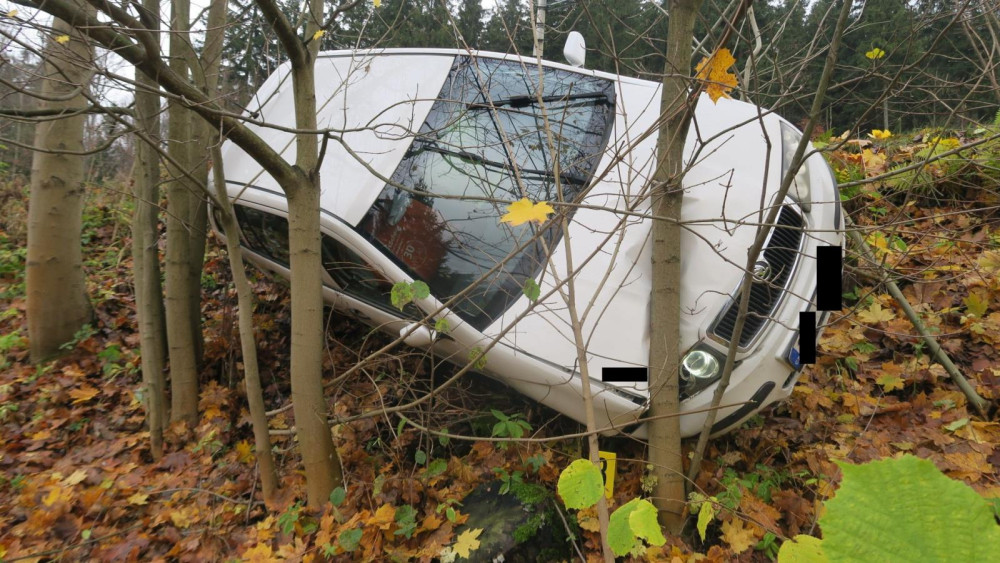 Řidič sjel ze silnice. Auto opřel o stromy, dechovou zkoušku odmítl