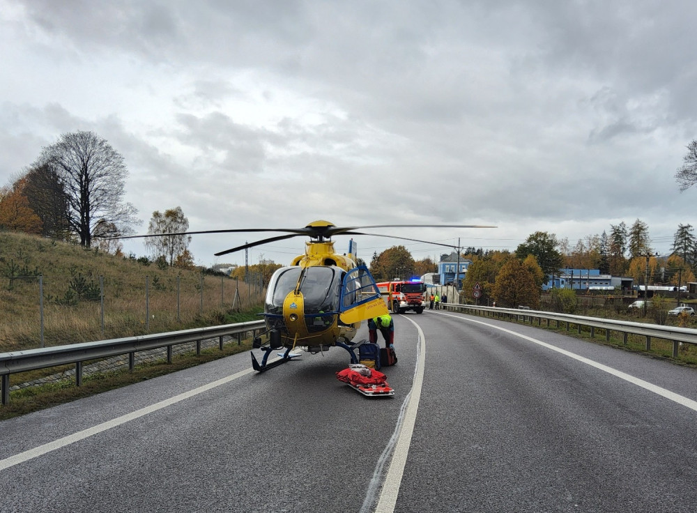 Nehoda kamionu a osobního vozu uzavřela silnici I/14 v Kunraticích