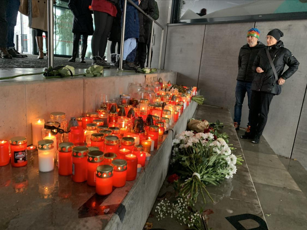 Připomínka obětí střelby. Minuta ticha, lidé se sešli u univerzity