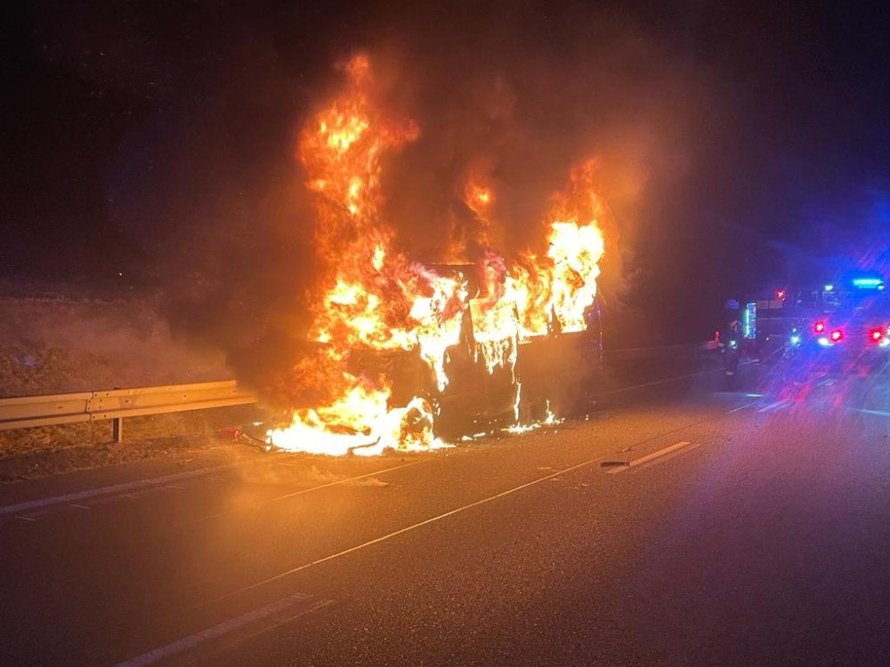 Hořící dodávka zastavila brzy ráno provoz na silnici I/35 do Liberce