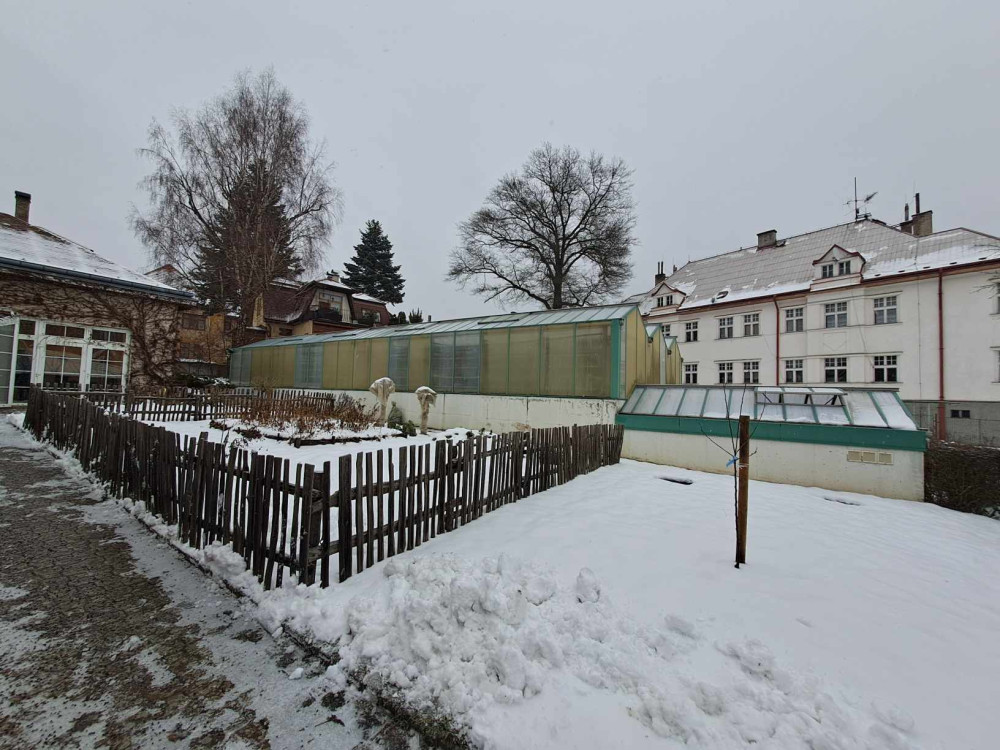 Depozitní skleník v zadní části zahrady.