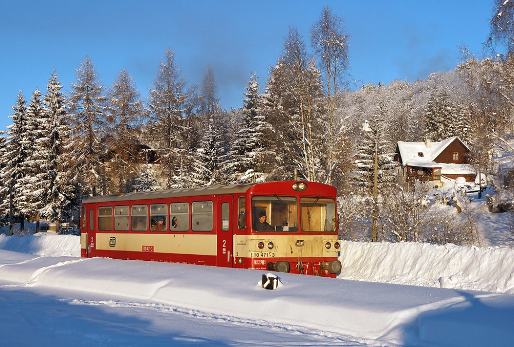 Na Zubačku vyjel první zimní motoráček. Událost vzbudila enormní zájem veřejnosti