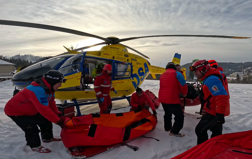 Vážný úraz na sjezdovce na Špičáku, muž narazil do stromu. Video ukazuje spolupráci záchranářů