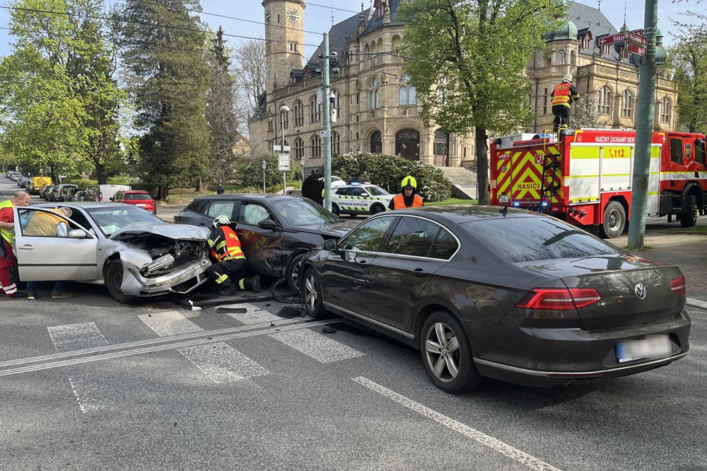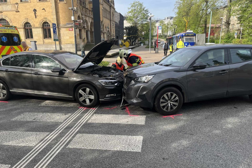 V Liberci u muzea se srazila tři auta. Při nehodě se zranili dva lidé