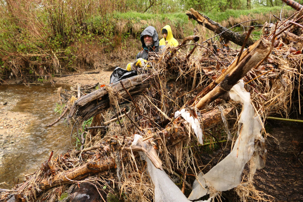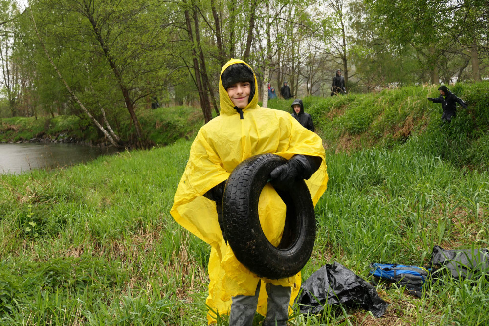 Dobrovolníci uklízeli meandry řeky Smědé. Nasbírali přes dvacet pytlů odpadu i pneumatiky z aut