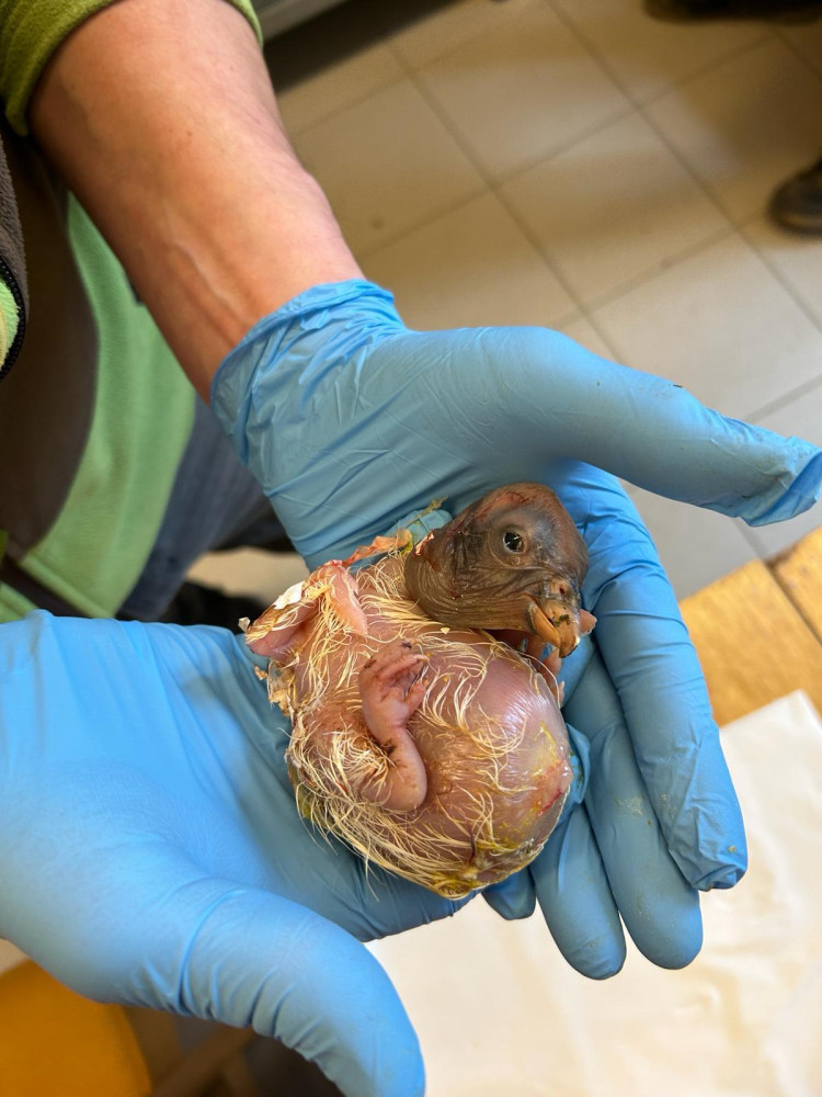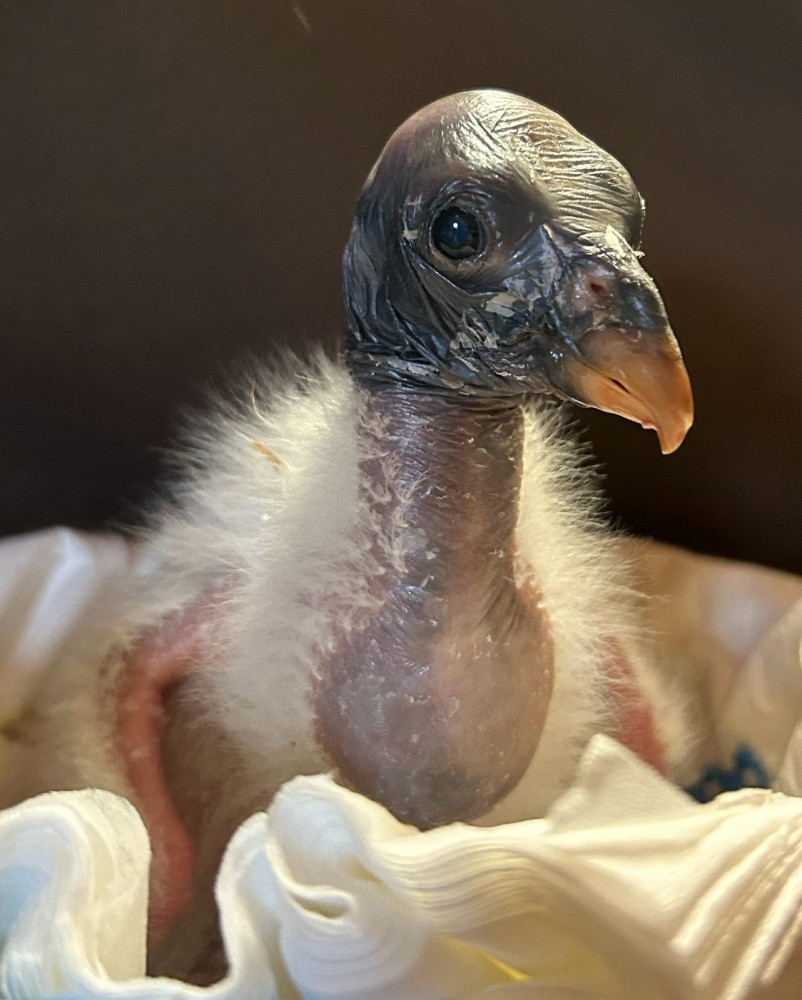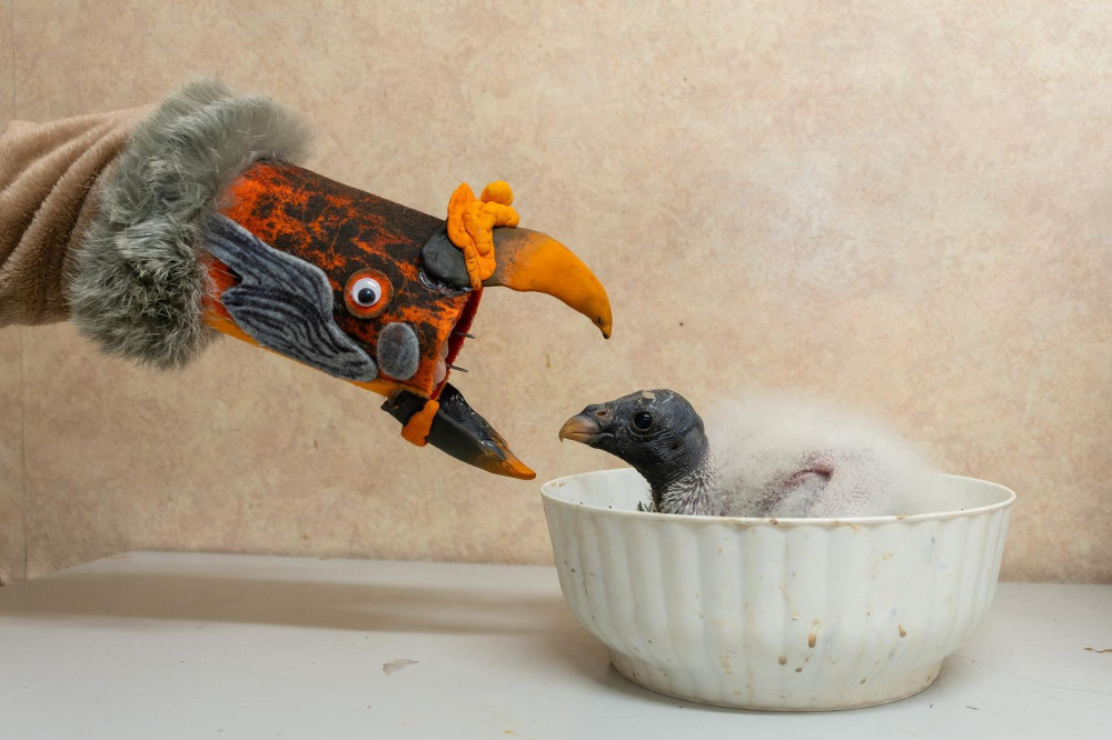 V liberecké zoo odchovali vzácného kondora z Olomouce. Mládě krmí maňásek
