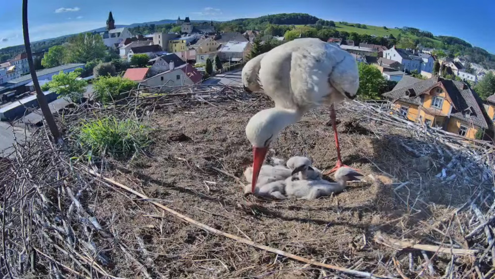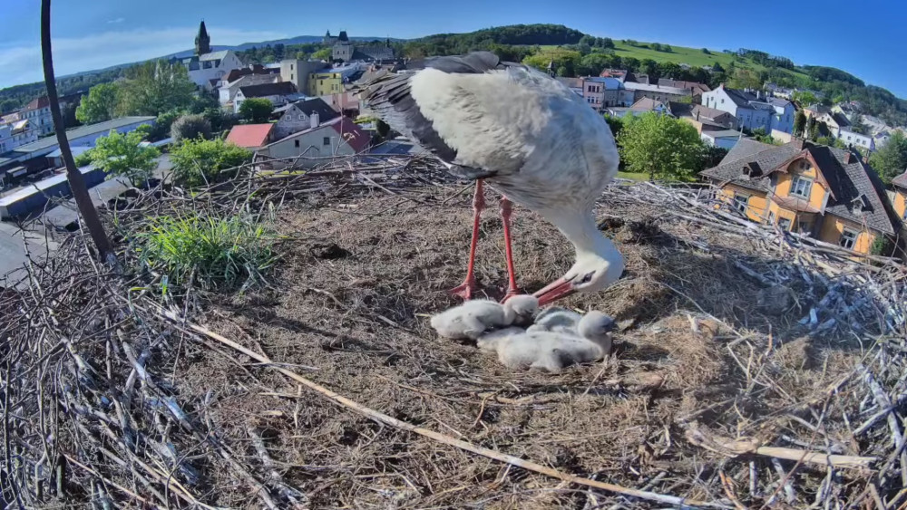 Frýdlant čeká na narození pátého mláděte čápa. V hnízdech v kraji už je rušno