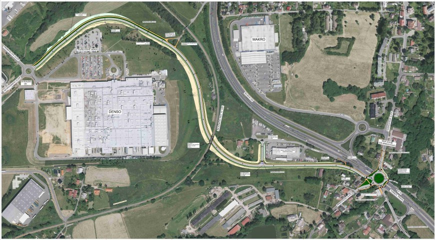 Jeden z dřívějších návrhů na novou silnici do průmyslové zóny.