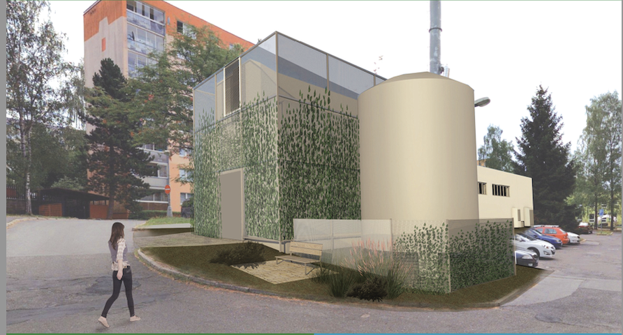 Podoba nové kotelny s kogenerační jednotkou a nádrží.