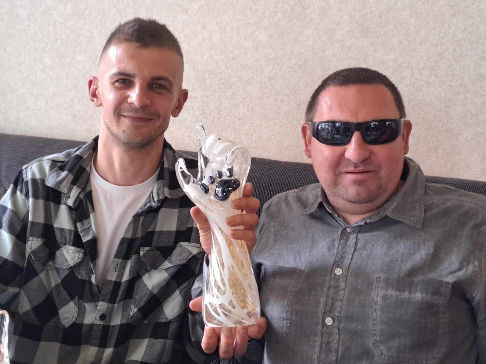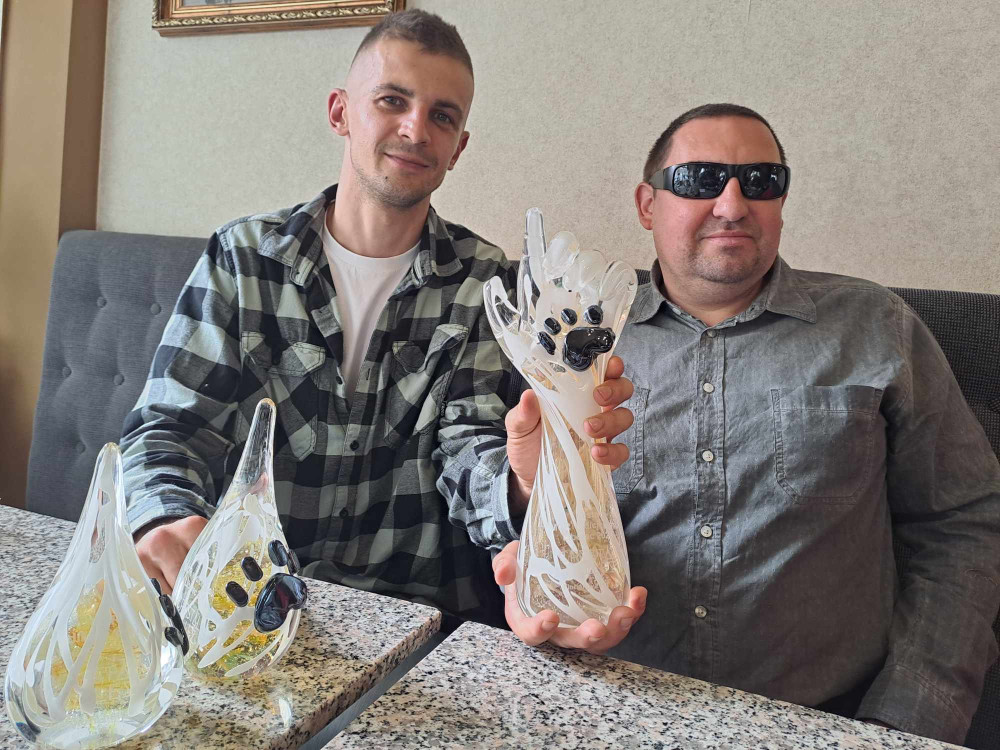 Sklář stvořil křišťálovou cenu pro nevidomé soutěžící. Symbolizuje pomoc