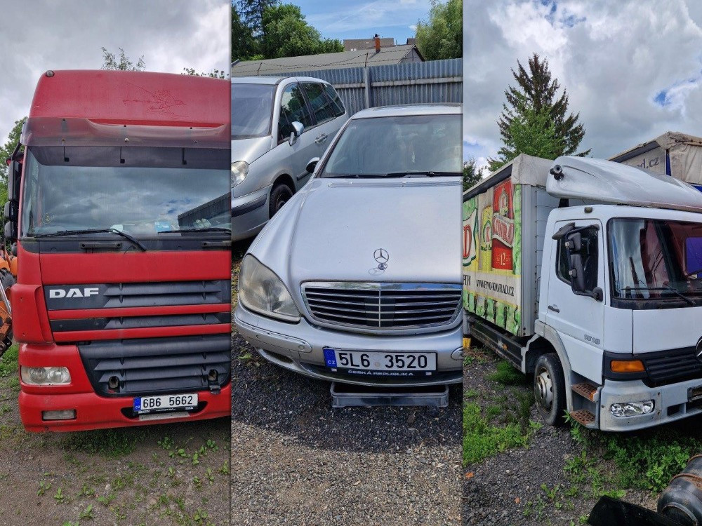 Mercedes i tahač a dva návěsy. Liberec chystá prodej odtažených aut