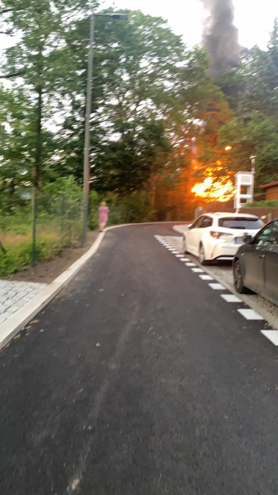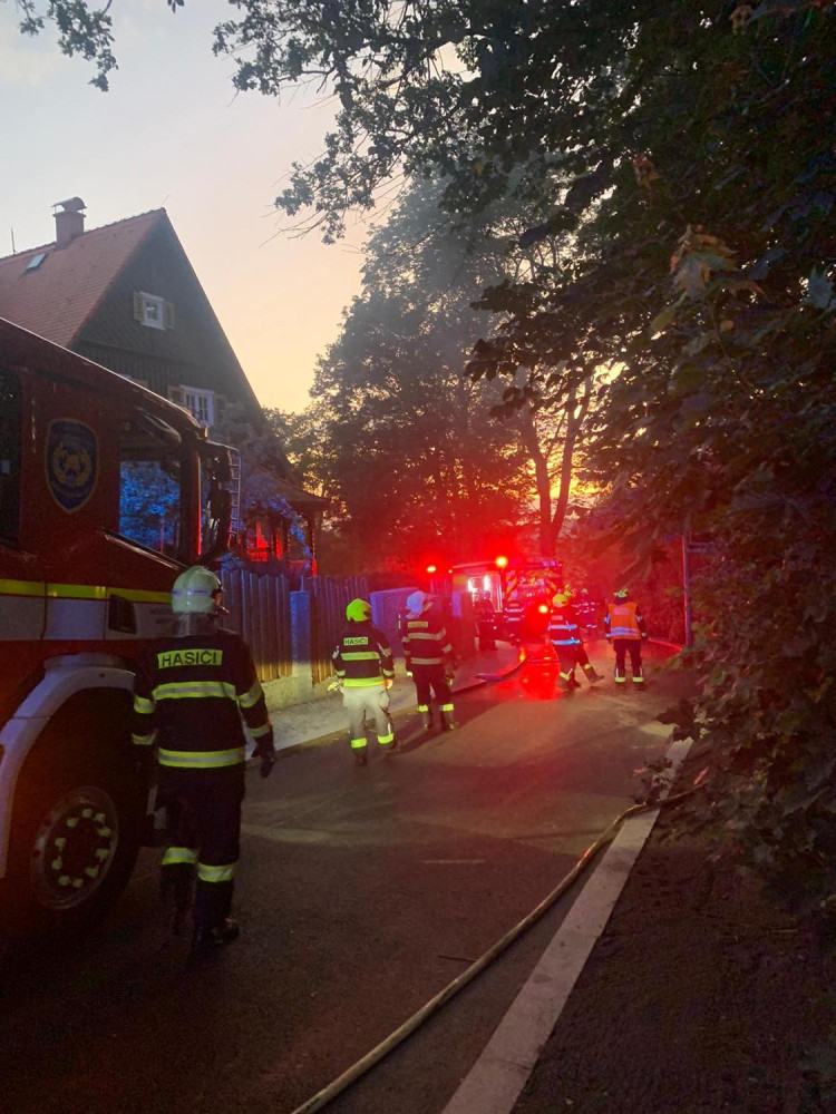Požár v Liberci. Hořelo v areálu bývalých skokanských můstků nedaleko Masarykovy ulice