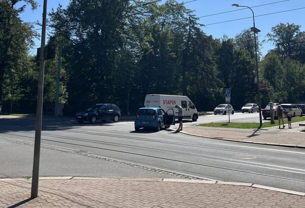 Superb nedal u muzea přednost, způsobil nehodu a ujel. Policii ale díky všímavosti ostatních řidičů neunikne
