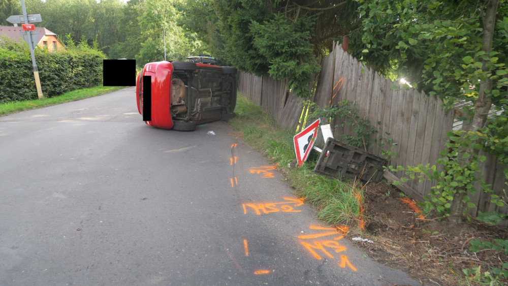 Žák autoškoly nezvládl jízdu a havaroval. Auto otočil na bok